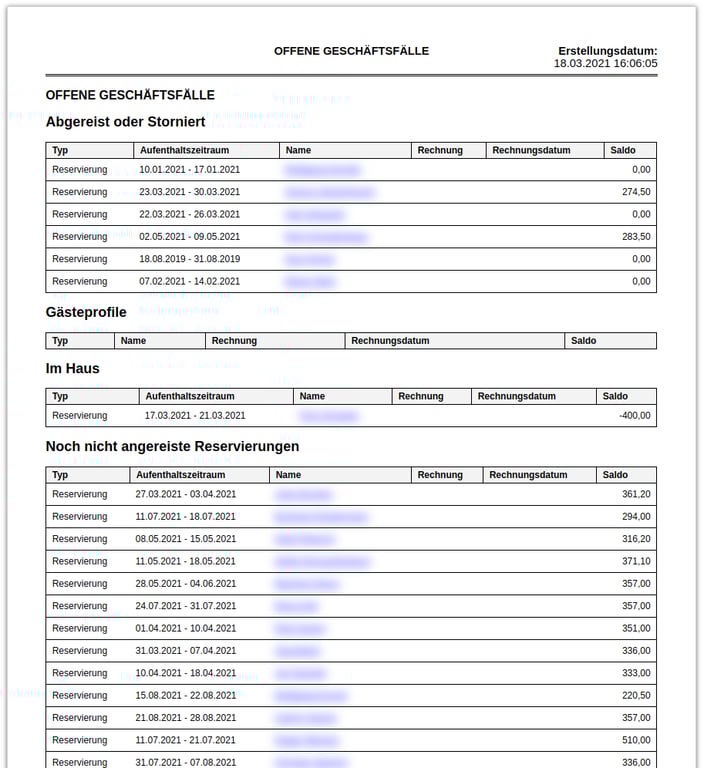 Häkchen - bedeutet alle Folios auf der Reservierung sind ausgeglichen